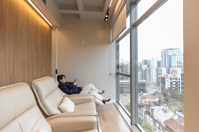 Nossa clínica está localizada em uma área nobre de Porto Alegre, com instalações modernas e acolhedoras, buscamos oferecer o máximo de conforto e segurança aos nossos pacientes. Contamos com consultórios equipados, salas de espera espaçosas e bem iluminadas, além de uma equipe altamente qualificada e dedicada a fornecer um atendimento personalizado e eficiente. Priorizamos o bem-estar e a satisfação de quem nos procura, garantindo um ambiente tranquilo e propício para cuidar da saúde e do bem-estar de nossos pacientes.